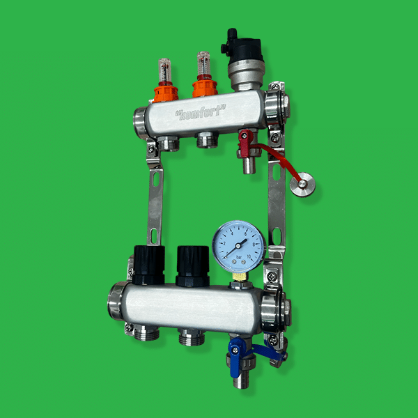 Introducing the Komfort Underfloor Heating Manifold, expertly designed to enhance your heating system efficiency while ensuring optimal performance. Crafted from high-quality stainless steel, our manifolds are manufactured to meet rigorous standards, guaranteeing durability and reliability in your underfloor heating setup.